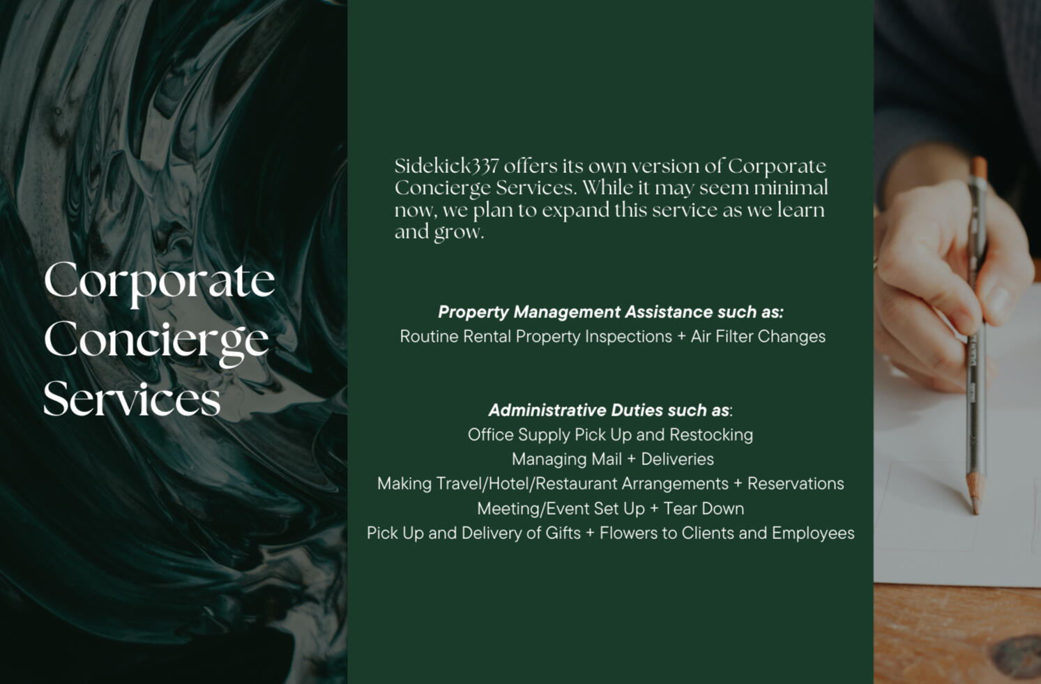 What is a concierge service, you may ask? Just think of us as your very own personal assistant - Your sidekick.