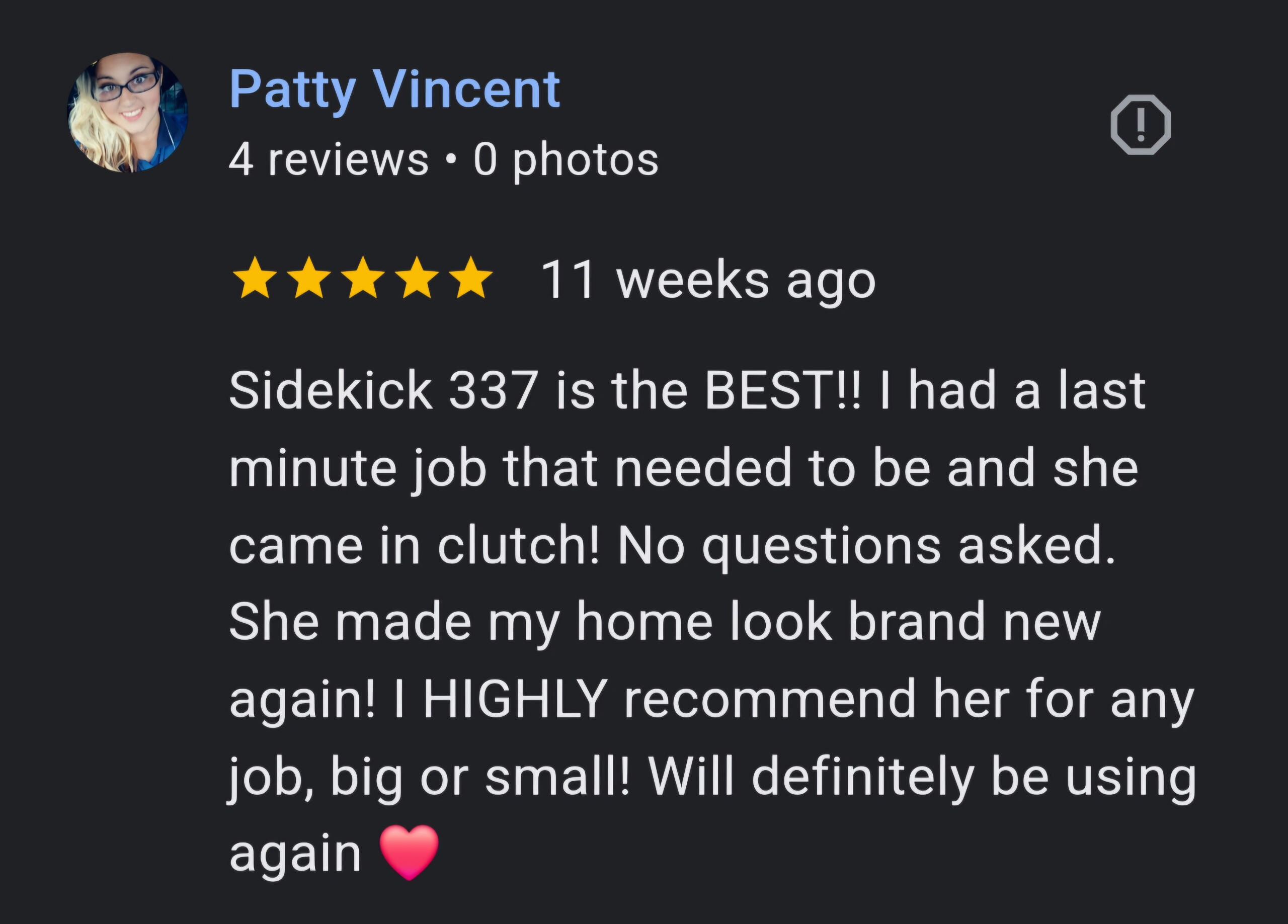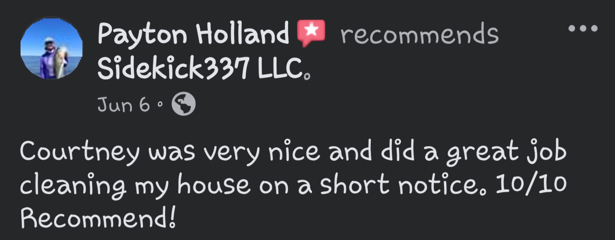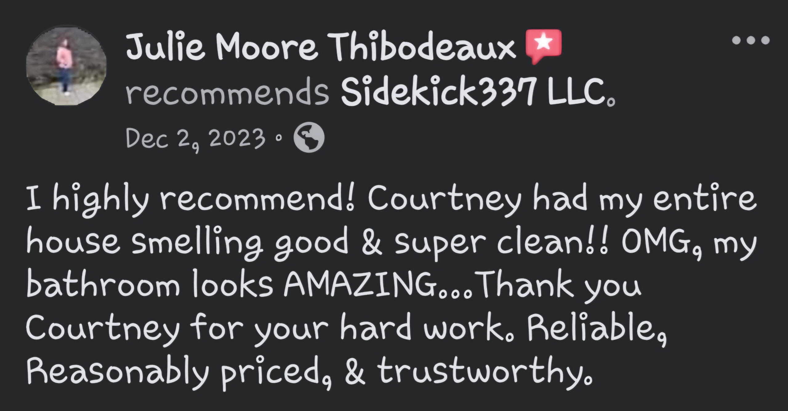 *High dusting: ceilings, ceiling fans, corners of the rooms, tops of large furniture, blinds/curtains, etc.